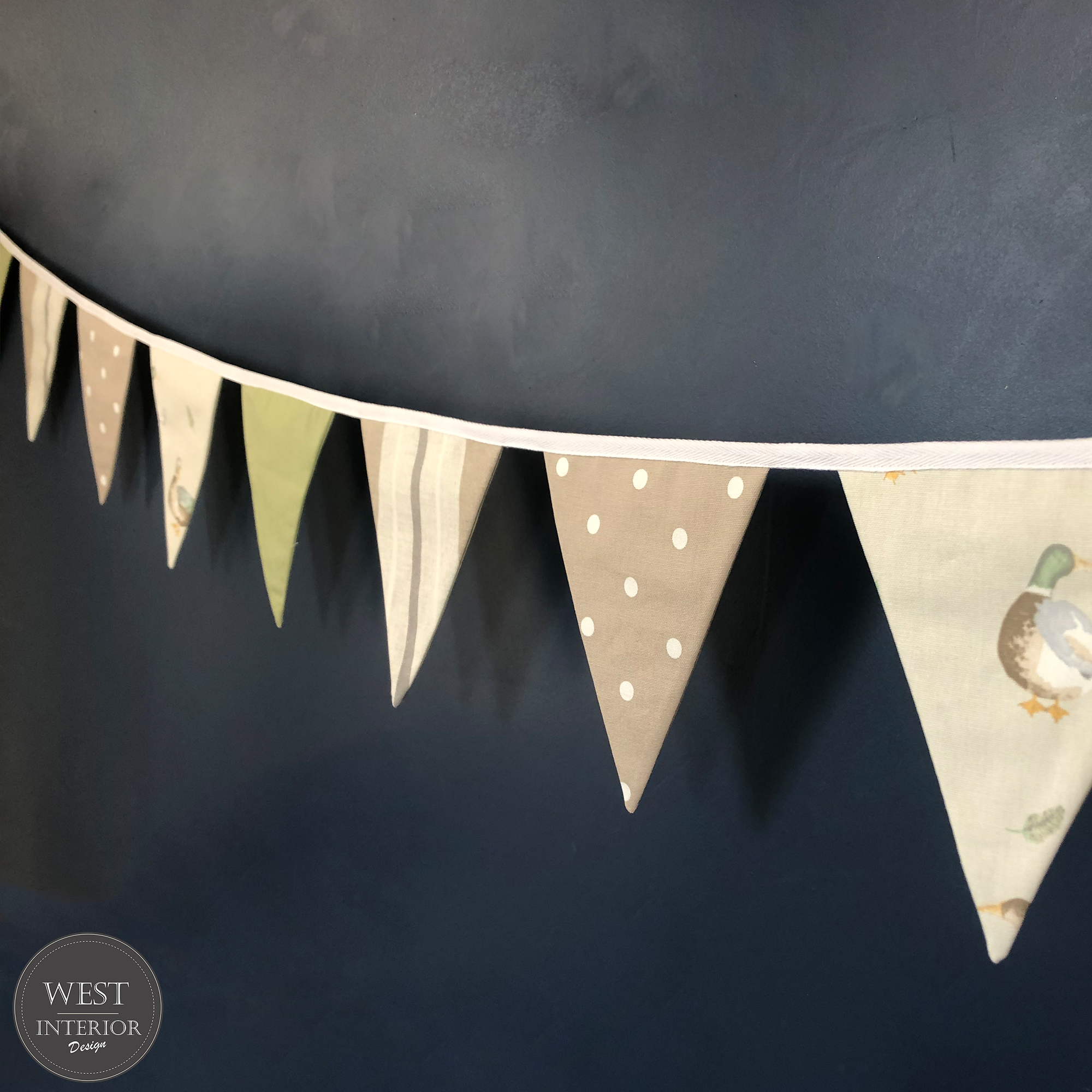 Grassy green, Ducks, spots and striped fabric go into making this beautiful vintage style bunting